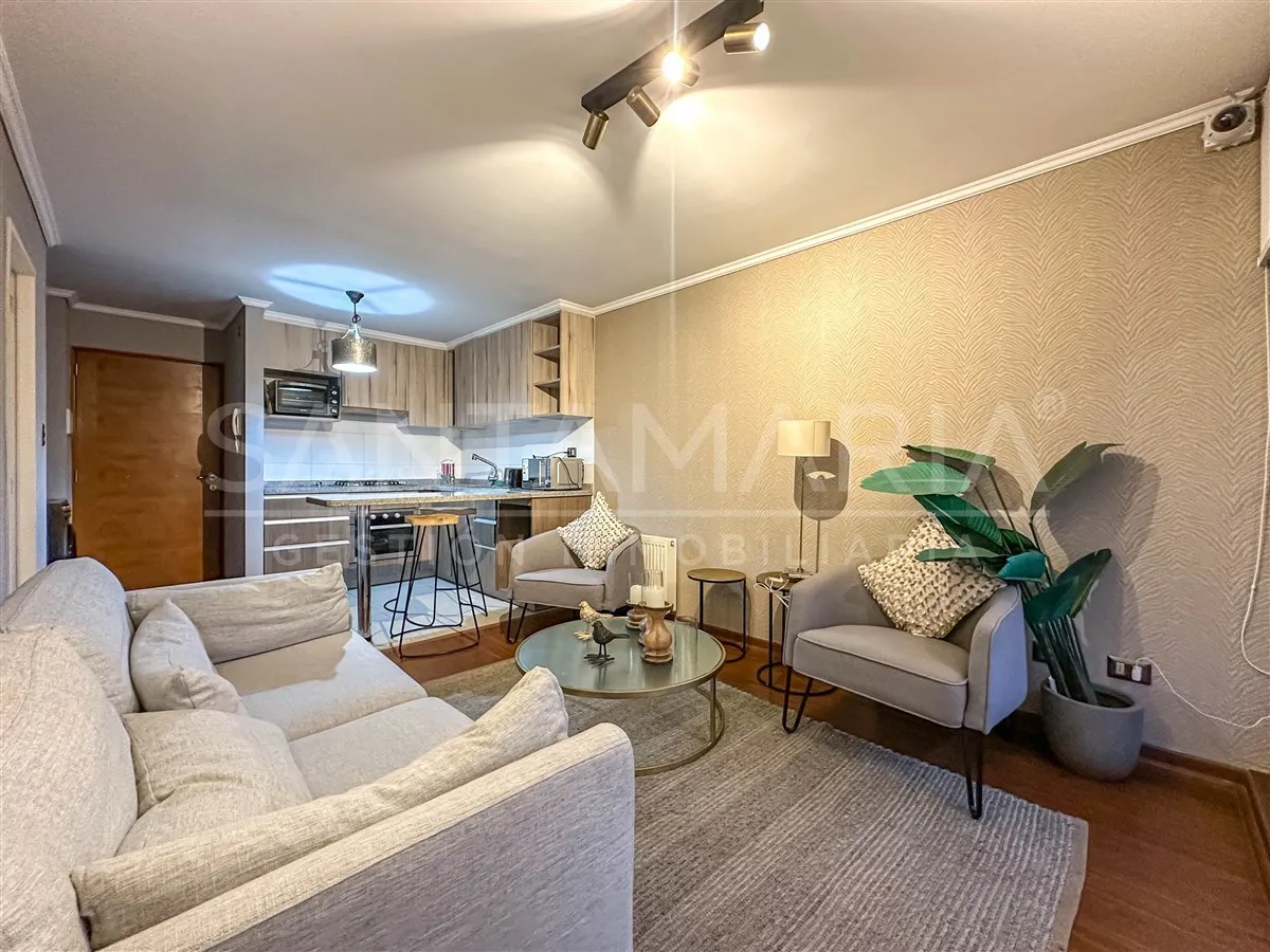 – S A N T A M A R I A – Gestión Inmobiliaria – Departamento ubicado en Lomas de San Andrés, Concepción. Superficies: Total 45m2,1 Dormitorio, 1 Baño, 1 Estacionamiento, 1 Bodega. DEPARTAMENTO AMOBLADO Arriendo: $580.000 Gastos comunes: 70.000 aprox Puntos de interés Frente a Mall Plaza el Trébol 1 cuadra de Supermercado Santa Isabel de Lomas de San Andrés 5 minutos de Universidad Católica, Universidad Andrés Bello, Duoc UC, etc. Departamento Living / Comedor Cocina americana Dormitorio